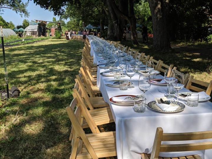 Sarah Welch, chef at Marrow, an award winning Detroit restaurant convinced the organization “Outstanding in the Field” to come to Food Field to hold a dining event where she created a wonderful multi-course, wine-paired dining experience. This organization seeks out extraordinary venue’s throughout the country and are now going international. They team up with a local outstanding chelf, creating an over-the-top dining experience….Check out their site: http://www.outstandinginthefield.com
