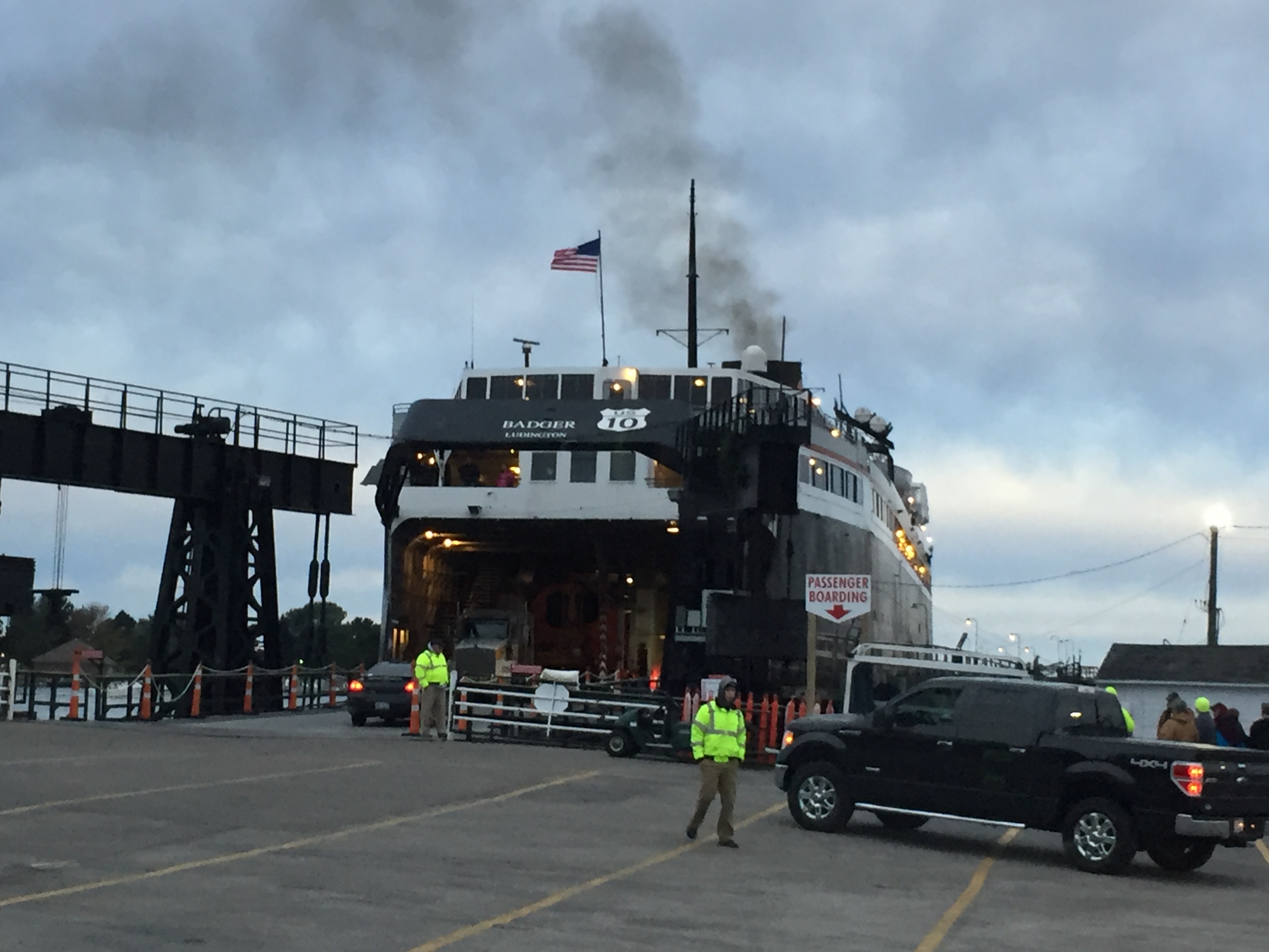 We learned last evening that 90sf of compact living requires an “out of the box” approach when perceiving what surrounds . Amazing how space can be so multifunctional when adding a little creative grease. Below we and Clo’set are boarding the S.S. Badger in Ludington on a 3 hour voyage into Wisconsin and the Door peninsula. I have been told that its beauty compares to that of Leelanau. We shall see.